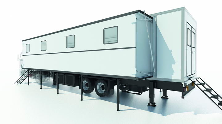 Скачать презентациюРазработанный и изготовленный на отечественном производстве мобильный комплекс многоцелевого назначения является автономным передвижным средством на базе полуприцепа евростандарта.