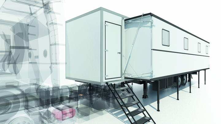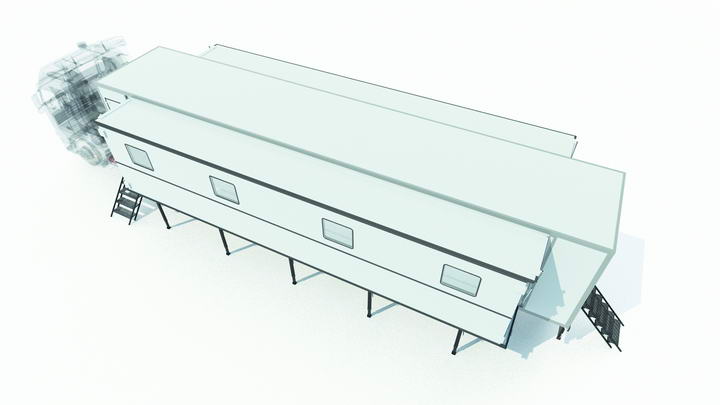 кузова выдвигаются со стандартного размера ширины в 2,5 метра до 5 или 7,5 метров.